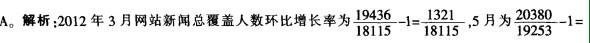 问题 2012年1~7月新闻网站总覆盖人数环比增长率最大的月份是: A.3月 B.5月 C.6月 D.7月