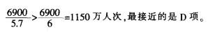 解析 2011年我国出境旅游人数6900万人次,比2000年增长了约470%,则所求为