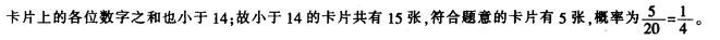 解析 (0,1)-(6,7)这7张卡片上的各位数字之和小于14;(9,10)~(15,16)和(19,20)这8张