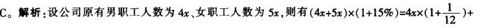 某公司男女职工比例为4:5,因为业务扩张,预计员工总数需要增加15%。在第一轮招 聘工作结束后,男职工增加了1/12,女职工增加了 40人,人力资源总监宣...