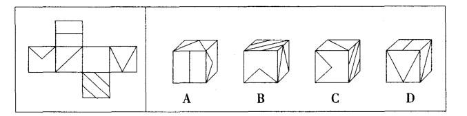问题 左边给定的是纸盒的外表面,下面哪一项能由它折叠而成?