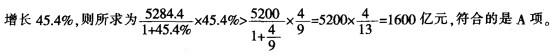 问题 根据以下资料,回答问题。 2011年安徽省规模以上高新技术产业实现产值8330.3亿元,比上年同期增长46.5%;实现 增加值2142.7亿元,同比增长24.6%,占全省GDP的比重14.2%,比上年提高1个百分点;实 现新产品产值1592.9亿元,比上年同期增长37.3%。 合芜蚌自主创新试验区规模以上高新技术产业实现产值5284.4亿元,比上年增长45.4%; 实现增加值1324.7亿元,比上年增长25.6%。 2011年,光机电领域实现增加值949.2亿元,新材料领域实现增加值637.6亿元,生物医药 领域实现增加值150.3亿元,电子信息领域实现增加值191.4亿元,新能源与高效节能领域实 现增加值174.3亿元,髙新技术服务业实现增加值39.9亿元。 2011年,全省1335家高新技术企业实现产值6163.7亿元,当年申请专利14183项,占全 省专利申请总数的M.2%,当年授权专利8807项,占全省专利授权总数的26.9%。其中,营业总 收入亿元以上的高新技术企业551家,10亿元以上的83家,国家重点高新技术企业73家,上 市高新技术企业54家。 2011年,合芜蚌自主创新试验区规模以上高新技术产业实现产值同比增加()亿元。 A. 1650.0 B.270.0 C.1543.8 D.326.1