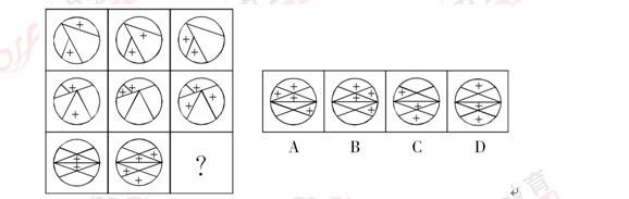 解析 每行来看,三个图形中圆的分割方式相同,且都有一个小图形在同一个区域,其他区域小图形各出现一次。