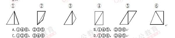 解析 图形①④⑤都由2个直角三角形构成,图形②③⑥由1个直角三角形和1个非直角三角形构成。