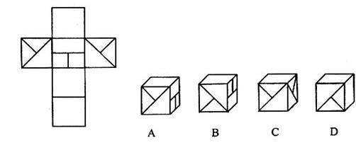 下面四个所给的选项中,哪一选项的盒子不能由左边给定的图形做成: