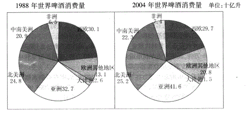 与亚洲相比,整个欧洲的啤酒消费量( )。A.绝对量多于亚洲,2004年相对于1998年的增长快于亚洲 B.绝对量多于亚洲,2004年相对于19...