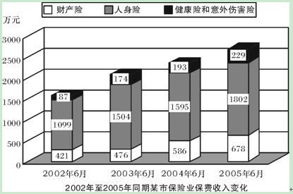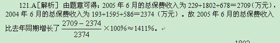 问题 该市2005年6月的总保费收入比去年同期约增长了( )。 A. 14.1% B. 24.1% C. 34.1% D. 68.5%