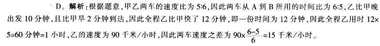 问题 甲乙两辆车从A地驶往90公里外的B地,两车的速度比为5:6。甲车于上午10点半出发,乙车于10点40分出发,最终乙车比甲车早2分钟到达B地。问两车的时速相差多少千米/小时? A.10 B.12 C.12.5 D.15