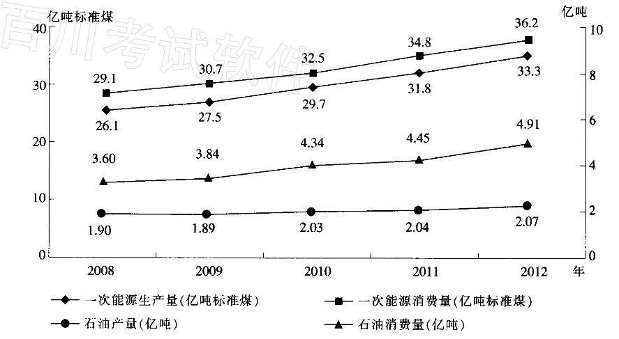 问题 关于2009~2012年全国矿产品贸易和能源生产、消费,能够从上述资料中推出的是: A.石油产量年均增速超过一次能源生产量 B.矿产品进出口总额占全国商品进出口总额比重逐年递增 C.矿产品进出口总额最低的年份,一次能源消费同比增量也最低 D.平均每年一次能源生产量超过30亿吨标准煤