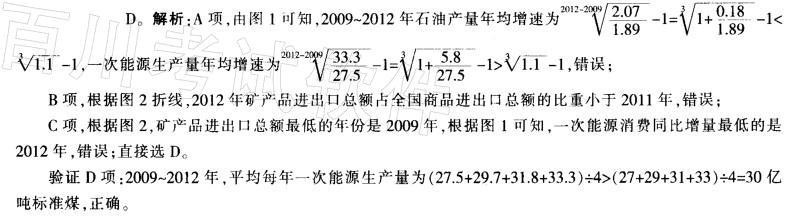 关于2009~2012年全国矿产品贸易和能源生产、消费,能够从上述资料中推出的是:A.石油产量年均增速超过一次能源生产量B.矿产品进出...