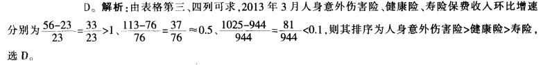 2013年3月,人身险的三个险种保费收入环比增速排序正确的是:A.人身意外伤害险> 寿险>健康险B.健康险>寿险>人身意外伤害险C.健...
