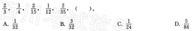 解析 将数列变形为,则分母做差为5,7,9,11,等差数列,下一项为13,因 此下一个数应为2/(35 + 13) =2/48=1/24。