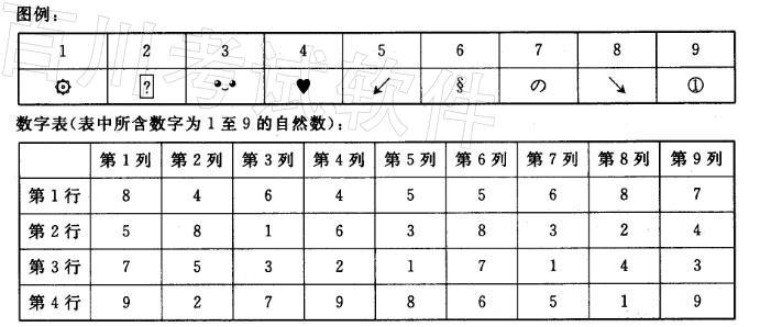 问题 根据图例和数字表回答下列各题: 数字表中第7列四个数字对应的符号是( )。