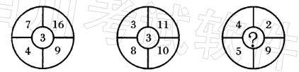 解析 7X4-(16 + 9)=3,3X8-(11 + 10) = 3,4X5 -(2 + 9) = 9,故问号处应为9。