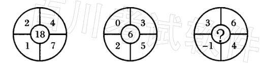 解析 2x7 + 4x1 = 18,0x5 + 3x2 = 6,3x4 + 6x(-1)=6,故问号处应为 6。