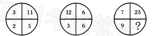 解析 (2 + 5) X2 = 3 + 11,(3 + 6) X2 = 12 + 6,(9 + ?) X 2 = 7 + 25,故问号处应为7。