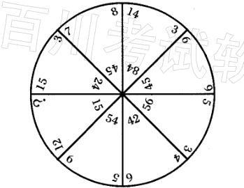解析 将每一格外圈的两个数字相乘,将乘积放入内圈顺时针隔开2格的位置,则12X ? =84→? =7,故本题正确答案为A。