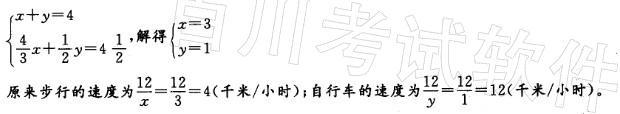 某人从甲城到乙城,两城相距24千米,步行一半路程后改骑自行车,共经4小时到达。回来时,仍一半路步行,一半路乘摩托车,而步行的速度是原速度的3/4,摩托车的...