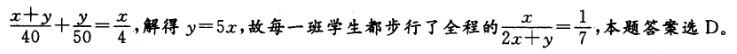 问题 有两个班的小学生要到少年宫参加活动,但只有一辆车接送,第一班的学生坐车从学校出发的同时,第二班学生开始步行;车到途中某处,让第一班的学生下车步行,车立刻返回接第二班学生上车,并直接开往少年宫,学生步行速度为每小时4千米,载学生时车速每小时40千米,空车每小时50千米。问:要使两班学生同时到达少年宫,第一班学生步行了全程的几分之几?(学生上下车时间不计)()