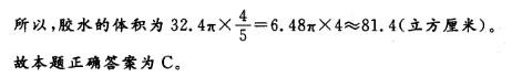 解析 瓶子正放时空余部分的体积与倒放时空余部分体积是相等的。所以,正放时含胶水部分与倒放时空余部分的体积和等于32.4π立方厘米,这两部分拼在一起恰好是高为10厘米,容积为32.4π立方厘米的圆柱。其中,含胶水的部分占8/10,即=4/5。