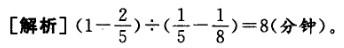 一水池安有进水管、出水管各一根,单开进水管5分钟注满水池,单开出水管8分钟把一池水放光,现池内的水占容积的2/5,同时打开两管还要几分钟注满全池?( )