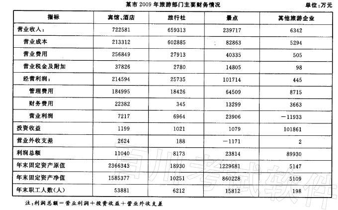 以下哪一类旅游部门2009年的经营利润占当年营业收入的比重最高?( ) A.宾馆、酒店 B.景点C.旅行社 D.其他旅游企业