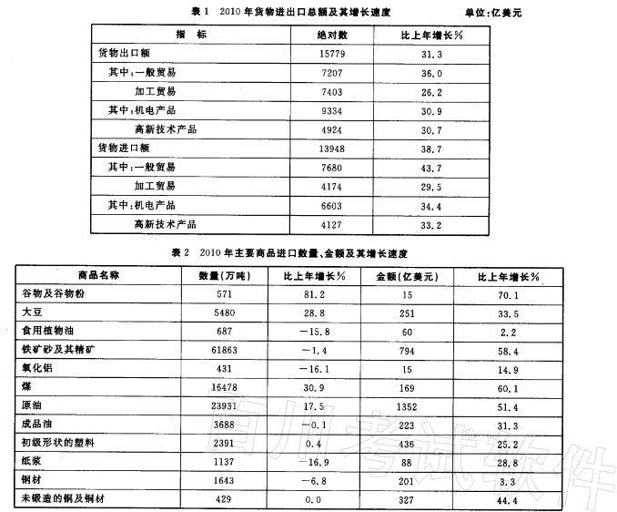 2010年我国货物出口额中加工贸易所占比重比货物进口额中加工贸易所占比重多约( )个百 分点。A. 7 B. 17C. 27 D. 37