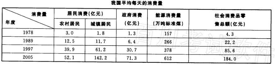 解析 1978年我国居民总消费额约为(3.0 + 1.8)X365 = 1752(亿元),本題选A。