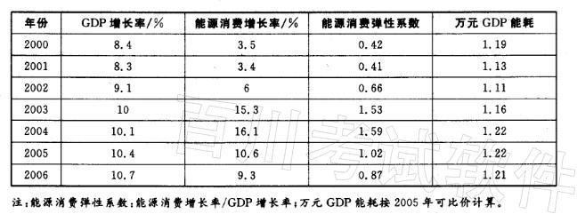解析 直接读表可以知道:万元GDP能耗最少的是2002的1.11吨标准煤/万元GDP。故正确答案为D。