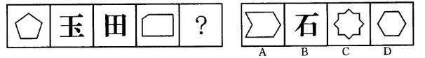 解析 题中图形都是有5条线段,汉字笔画都是5,只有B符合规律。故本题选择B项。