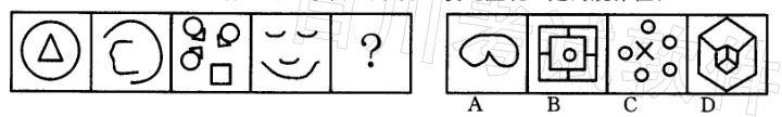 解析 题干图形所含的曲线数分别为1、2、3、4,接下来应为5,故选C。