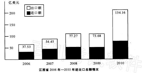 解析 2012 年的进出口总额为(134. 16 + 80. 37) X (1 + 15%) =214. 53X1. 15 = 246. 7(亿美元),故选A。