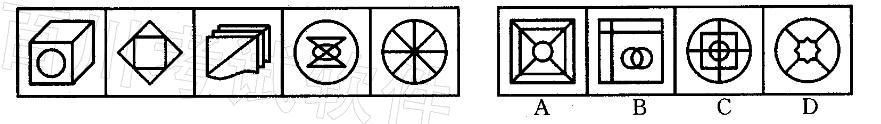 问题 从所给的四个选项中,选择最合适的一个,使之符合左边五个图形的规律性: