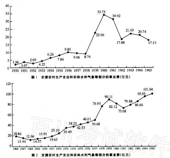 下列选项正确的是( )。A. 1950年到1965年支援农村生产支出和农林水利气象等部门的事业费持续增加B. 1966年到1985年支...