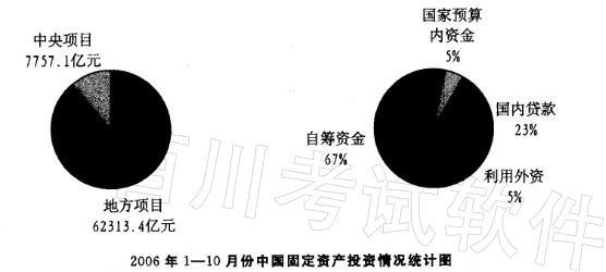 解析 2006年1-10月,中央项目和地方项目固定资产投资分别为7757.1亿元和62313. 4 亿元,7757.1/(7757. 1 + 62313. 4)≈0. 11,比较四个选项,A项最为接近。