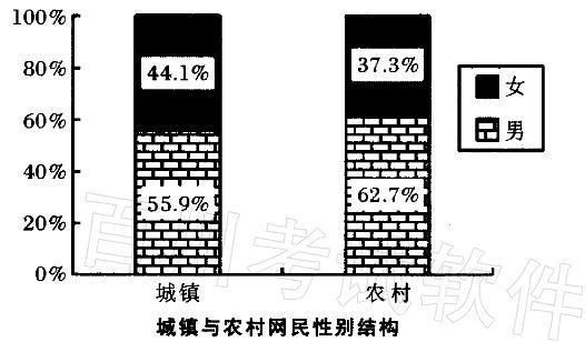 在不同年龄段中,男女网民比例差距大于15%的年龄组共有()。A. 3个 B. 4个 C. 5个 D. 6个