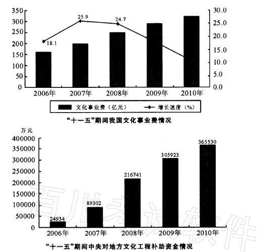 根据资料,下列说法正确的是( )。A. “十一五”期间,中央对地方文化工程平均每年补助资金超过220000万元B. “十一五”期间,中央对地方...