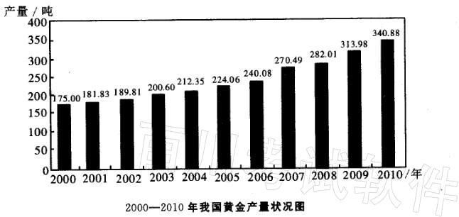 2010年,我国黄金产量为340. 88吨,同比增长8. 57%。其中矿产金280. 04吨,同比增长7. 27%;有色副产金60. 84吨,同比增长14...