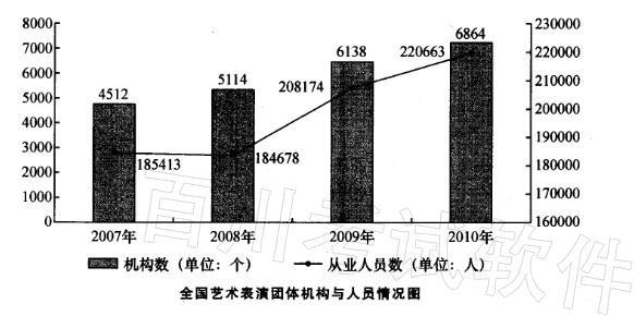 如果2011年从业人员人数年增长率与2010年相同,则2011年从业人员人数约为()。 A. 22.8 B. 23. 4 C. 24.9 D....