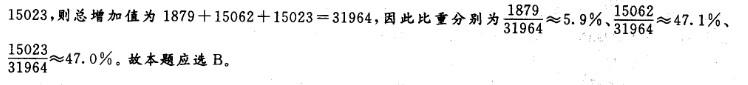 解析 本题考查比重的计算。海洋第一、第二、第三产业的增加值分别为1879、15062、?