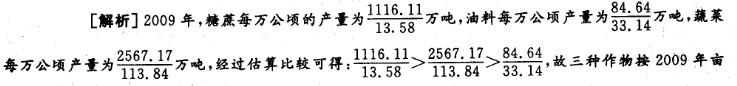解析 产从高到低排序为:糖蔗、蔬菜、油料。故正确答案为B。