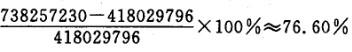 解析 亚洲网民比欧洲多738257230-418029796 = 320227434(人),B、C两项错误。亚洲网民比欧洲多的百分比是:,故选项D正确。