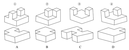 78.①、②、③、④为四个多面体零件,问A、B、C、D四个多面体零件中的哪一个与①、②、③、④中的任一个都不能组合成长方体( )
