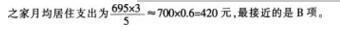 解析 根据表格数据可知,2014年1—5月A区农村居民人均居住消费支出为695元,则三口