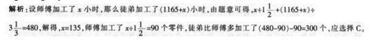 同时加工若干小时后,师傅因另有任务退出,余下的由徒弟单独加工,完成任务时,徒弟比师傅多加工1165小时.徒弟比师傅多加工多少零件?A.240 B...