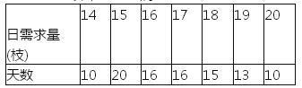 问题 某花店每天以每枝5元的价格从农场购进若干枝玫瑰花,然后以每枝10元的价格出售。如果当天卖不完,剩下的玫瑰花作垃圾处理。下表所示为花店记录的连续100天玫瑰花的日需求量,若花店每天购进17枝玫瑰花,依此过去100天的需求量推算,当天利润不少于75元的概率为: