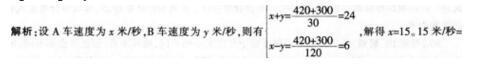 一列高铁列车A车长420米,另一列高铁列车B车长300米,在平行的轨道上相向而行,从两个车头相遇到车尾相离经过30秒。如果两车同向而行,列车B在前,列车A...