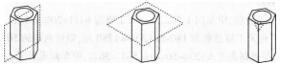 问题 下列的立体图形是六棱柱中挖出一个圆柱后形成的,如果从任一面剖开,以下哪一个不可能是该立体图形的截面?