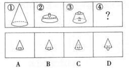 下图中的立体图形①是由立体图形②、③和④组合而成,下列哪一项能够填入问号处? A.如图 B.如上图 C.如上图示 D.如图所示