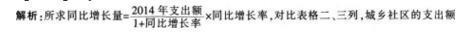 解析 和同比增长率均大于农林水、医疗卫生与计划生育,则同比增长量也较大,排除B、C两项;城乡社区的支出额为6180,是住房保障支出额2019的3倍多,而同比增长率两者相差不大,可直接判断同比增长量最多的为城乡社区.选D。